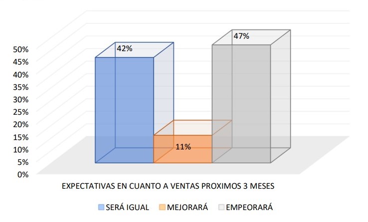 El 11% de los encuestados afirma que las ventas en el sector mejorarán en los próximos tres meses, mientras que un 47% opina que empeorará y un 42% que serán iguales.