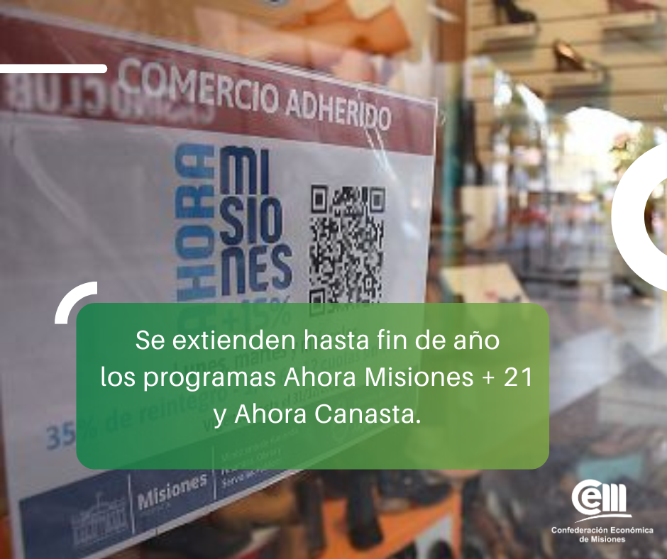Así, la vigencia de estos programas se suma a las líneas de los Programas Ahora que también seguirán vigentes hasta el 31 de diciembre de este año: Ahora Misiones, Ahora Bienes Durables, Ahora Mujer, Ahora Turismo, Ahora Estudiantes, Ahora Patentamiento, Ahora Carne, Ahora Gastronomía, Ahora Feria, Ahora Mascotas, Ahora Gas y Ahora Pan.