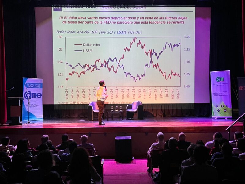 Fausto Spotorno, licenciado en Economía por la UCA, master en Finanzas en el UCEMA, docente y consultor desde hace más de 20 años en Orlando J Ferreres y Asociados; disertó sobre la coyuntura económica actual, el dólar y los escenarios posibles para el mediano plazo. También sobre tasas de interés y si impacto sobre la actividad económica.