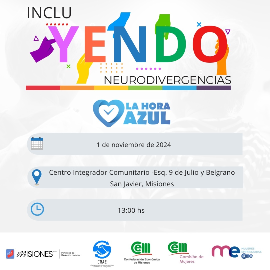 La Cámara de Comercio de San Javier, invita al Conversatorio del Programa Incluyendo, donde se abordarán los temas: Hora Azul, Espacios TEAmigo y Botiquín de calma. Los cuales brindan herramientas para una mejor calidad en la atención de personas con Neurodivergencias. El encuentro cuenta con el apoyo de la CEM, la Comisión de Mujeres CEM y Mujeres CAME.