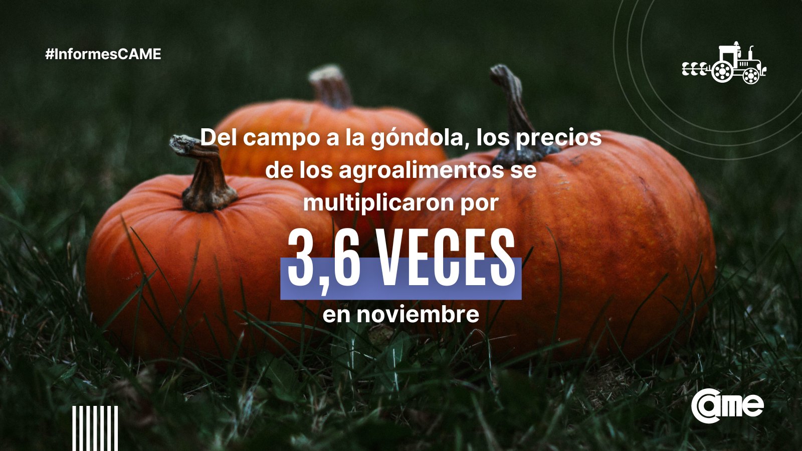 En noviembre, los precios de los agroalimentos se multiplicaron por 3,6 veces desde que salieron del campo (origen) hasta que llegaron a la góndola (destino), según el Índice de Precios en Origen y Destino (IPOD) elaborado por el sector de Economías Regionales de la Confederación Argentina de la Mediana Empresa (CAME). Es decir, los consumidores pagaron $3,6 por cada $1 que recibieron los productores de los 24 productos agropecuarios que componen la canasta IPOD.