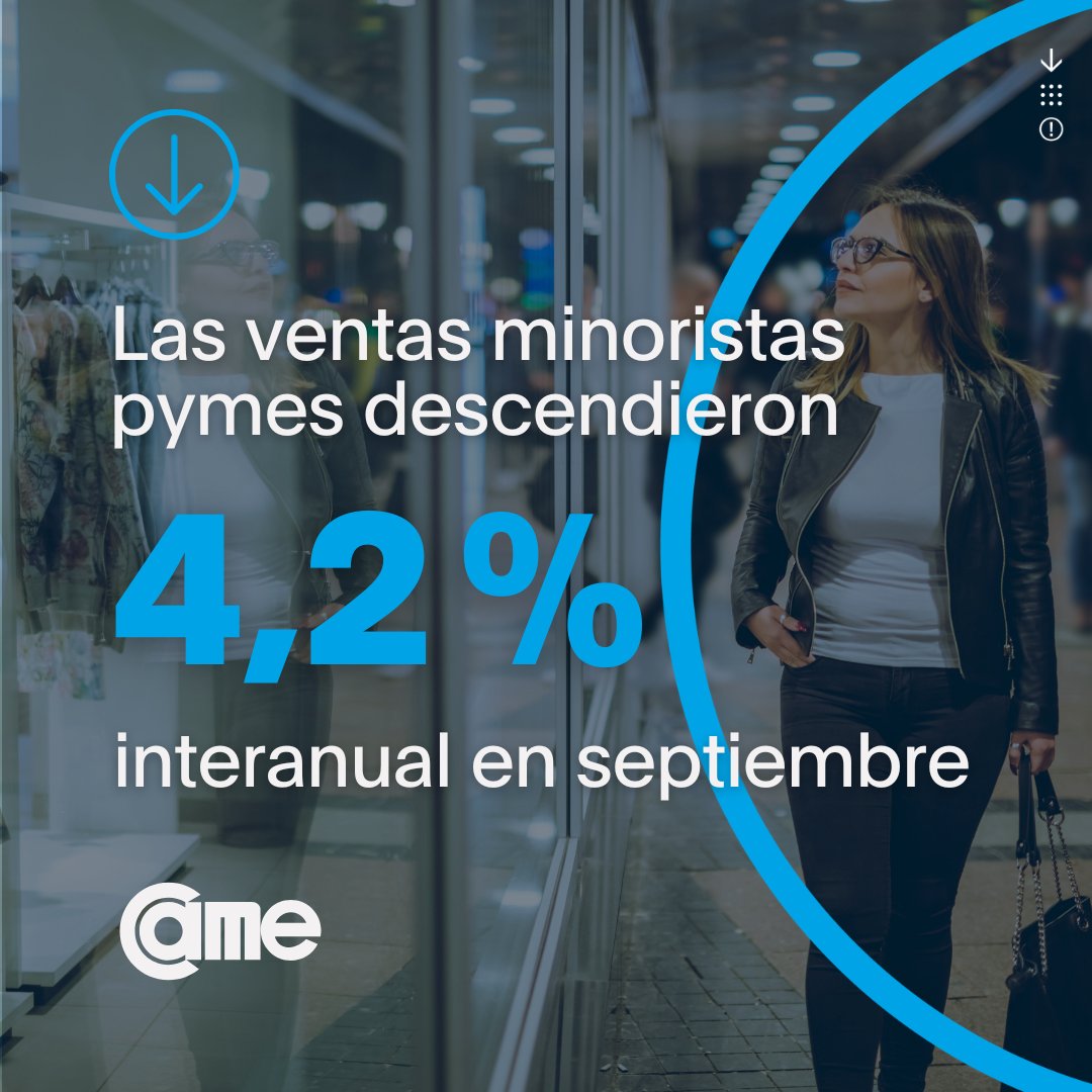 En septiembre, las ventas minoristas pymes registraron una variación interanual de -4,2% a precios constantes, mientras que, en la comparación mensual desestacionalizada, la variación fue de -2%. En lo que va del año, acumulan un incremento interanual del 5%.