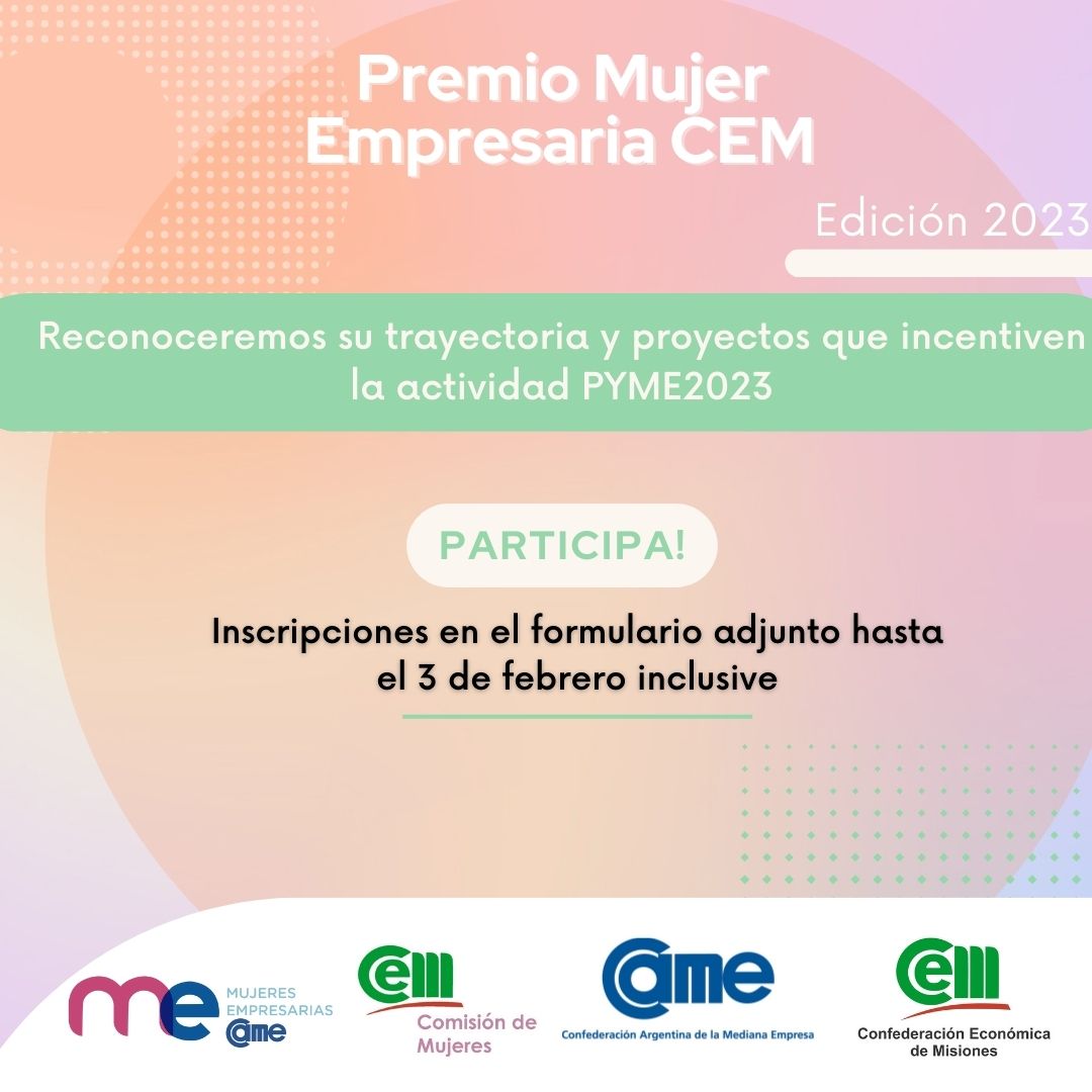 Como todos los años se lanza la inscripción para participar al premio Mujer Empresaria, organizada por la Comisión de Mujeres de la CEM y representar a Misiones en el premio a nivel nacional.